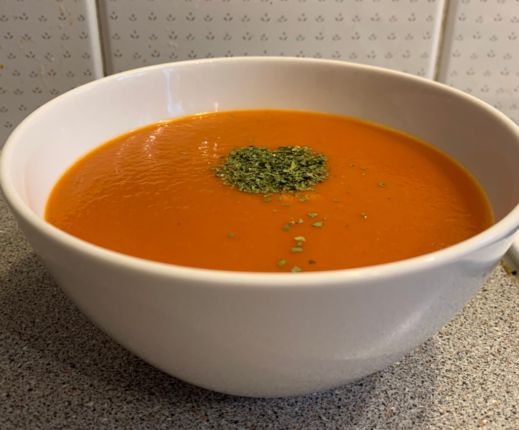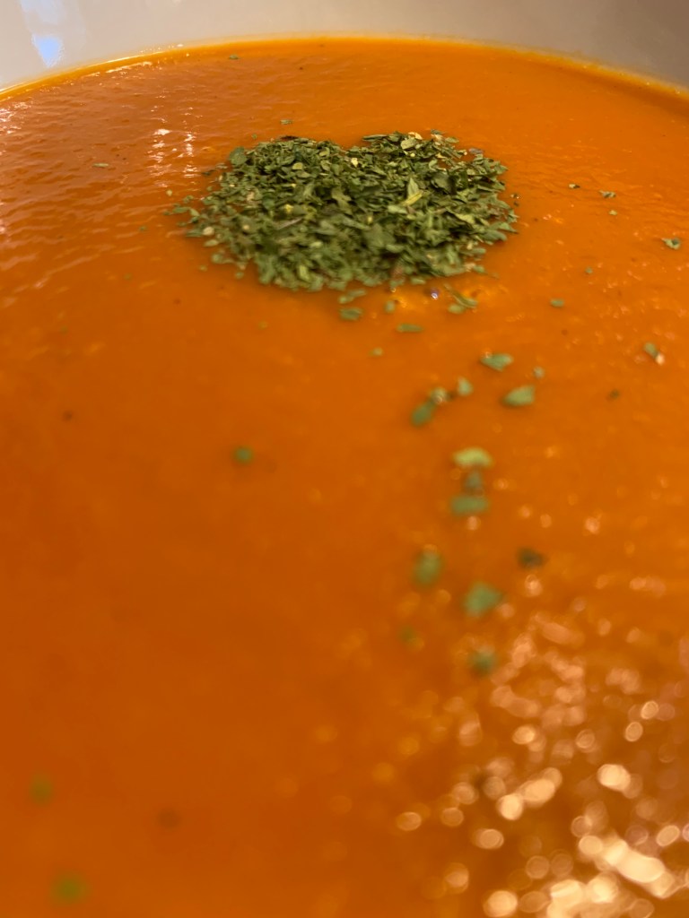It’s a sunny afternoon and my grandma popped round with some plums. A nice surprise but with me currently undertaking a savoury adventure, this ingredient seemed tricky to incorporate into a dish. I first thought to puree them and that led me onto the idea of soup and I’m glad it did! Although I’m not usually one to choose tomato soup, I was pleasantly surprised! The soup was tangy, comforting and left me wanting more!