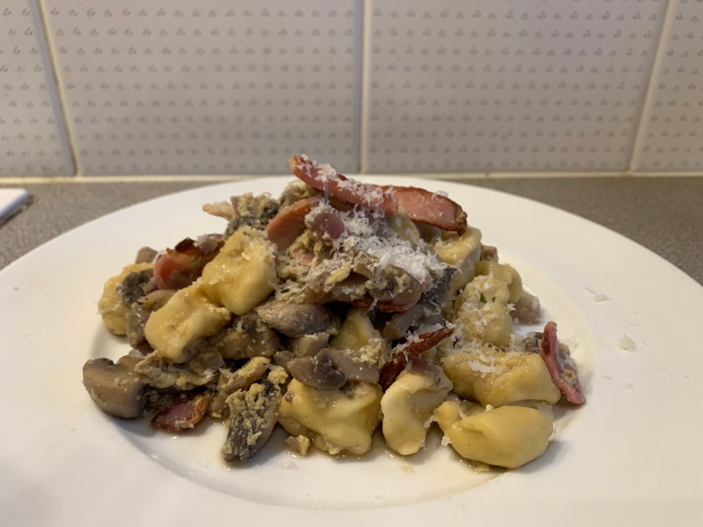 Mushroom and bacon tortellini : https://www.sweetteaandthyme.com/tortellini-recipe-bacon-mushroom/